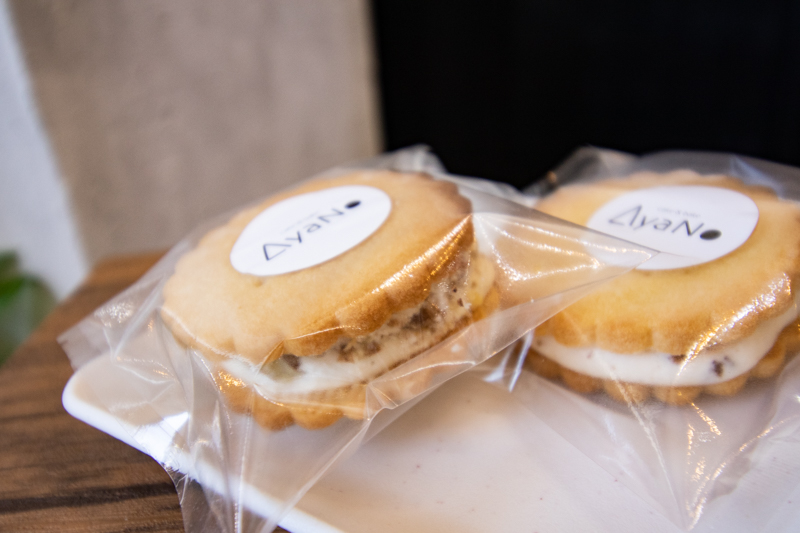 バターサンドは、「レーズンバターサンドクッキー」(250円)と「メープルバターサンドクッキー」(250円)の2種類。
