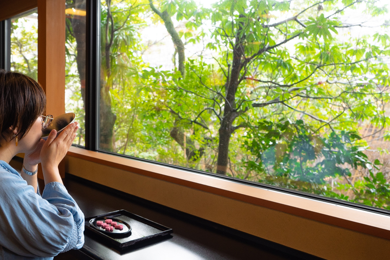 終わったあとは緑いっぱいの窓の外を眺めながらお茶をいただけるなんて…
