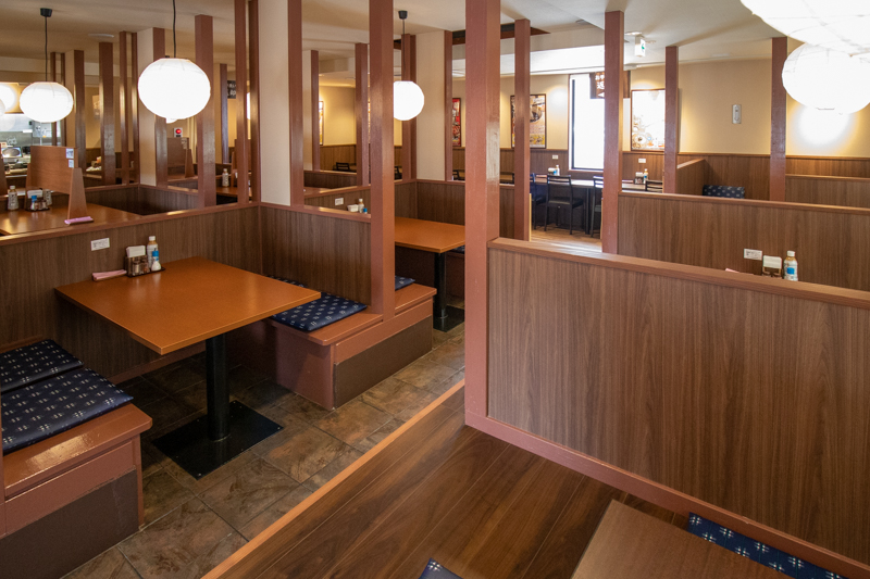 カウンター席やテーブル席、座敷席を完備する広々とした店内。