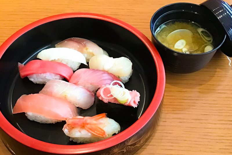 握り10貫とみそ汁(ランチのみ)がついた大満足の内容です!