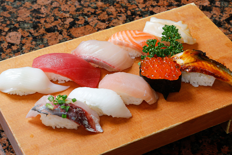 お寿司は旬魚を仕入れ、熟練の職人さんが握ってくれる本格派。